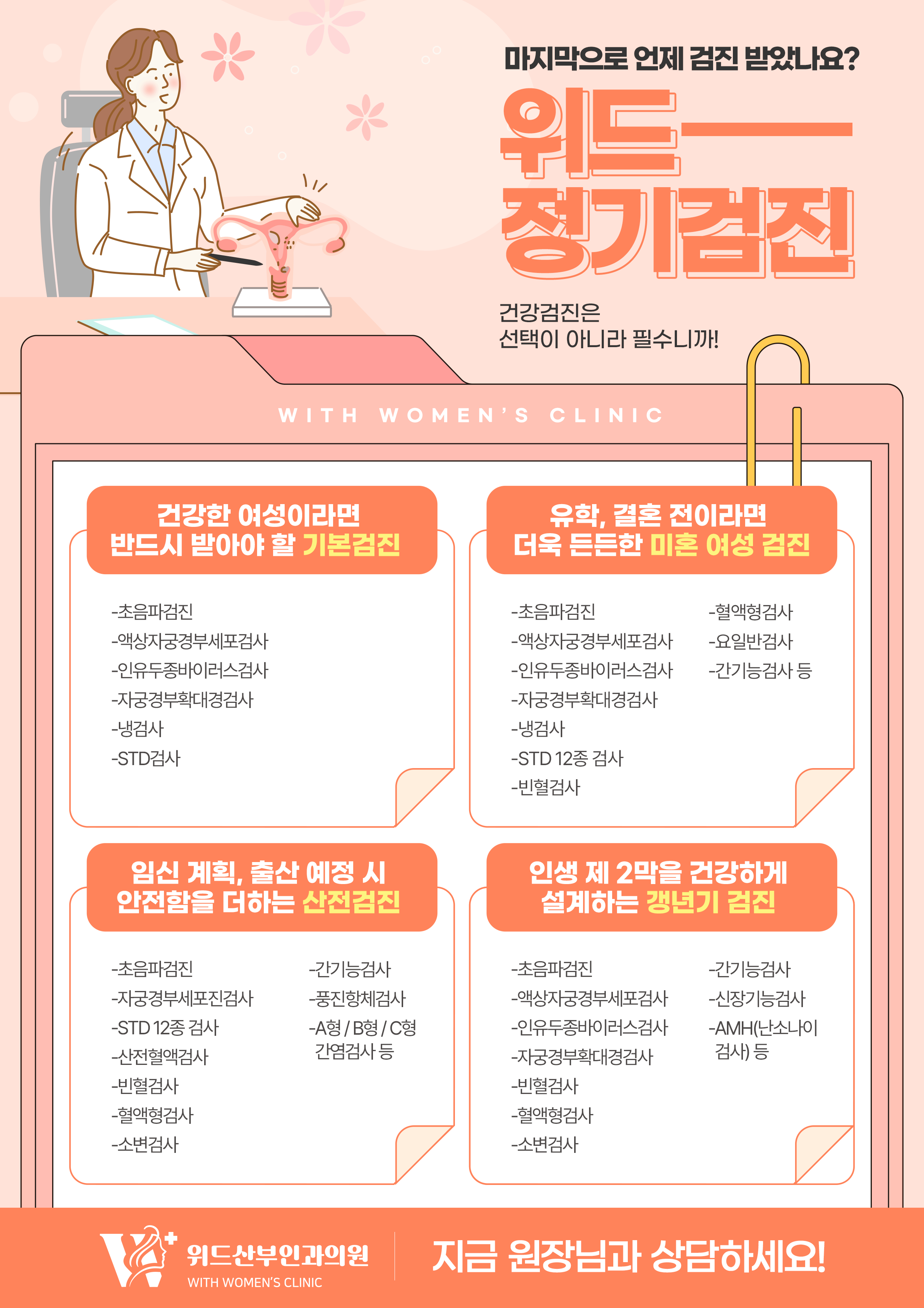 기본 , 종합 , 미혼여성 웨딩 , 유학전 , 폐경 등